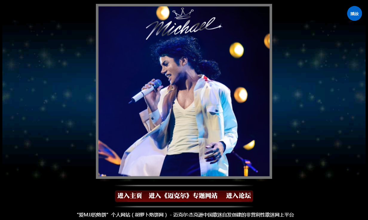 “爱MJJ的烙饼”个人网站(胡萝卜烙饼网)成立于2025年1月12日,是迈克尔·杰克逊中国歌迷自发创建的非营利性歌迷网上平台,也是一个集MJ资讯共享与MJ文化传播为一体的迈迷庇护所。