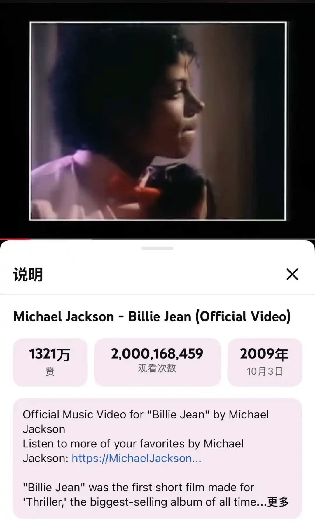 新年第一天普天同庆!迈克尔·杰克逊神曲《比莉·简》音乐录影观看量破20亿!! |