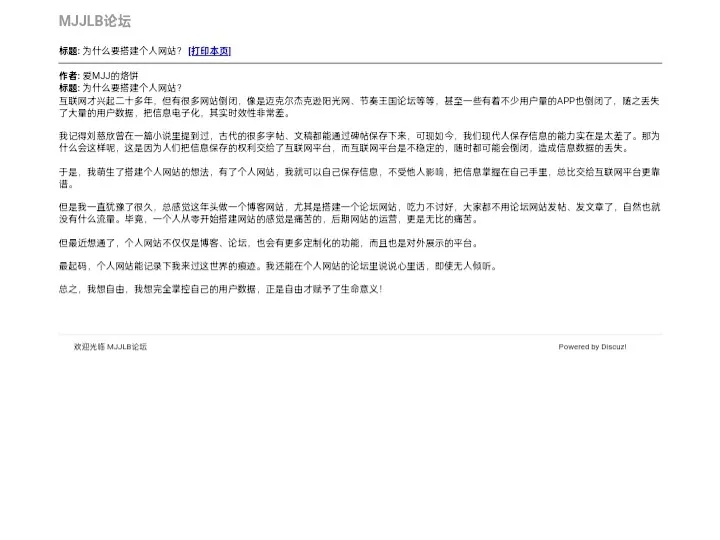 我也曾努力尝试过,和身边志同道合的朋友搭建了MJJLB网站和论坛。